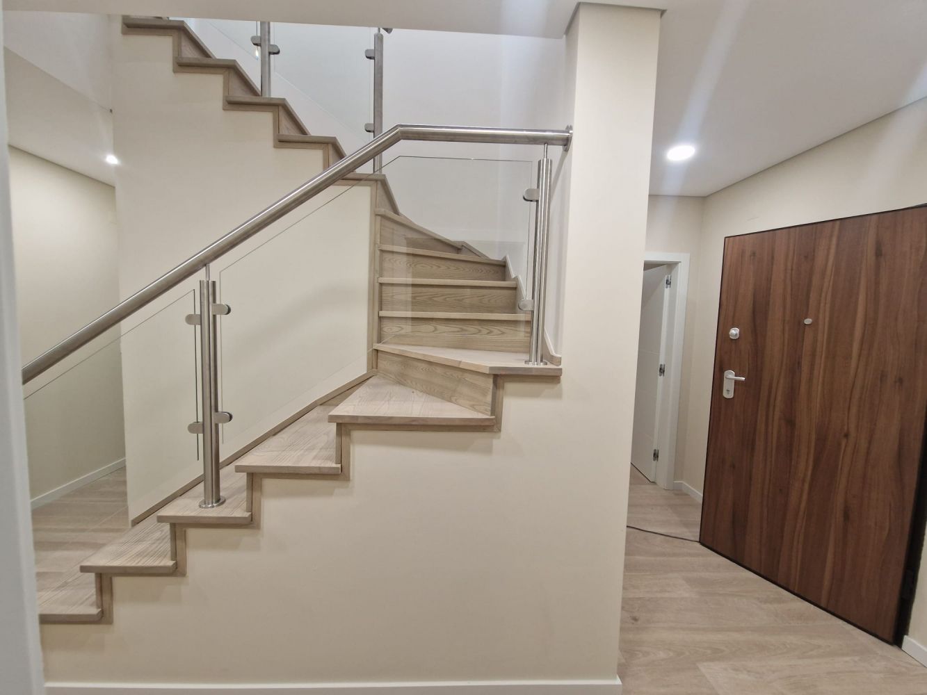 Apartamento T2 Duplex Novo de 1ª qualidade, muito espaçoso, com 158 m2, no 4º e último andar, com 2 elevadores desde a cave até ao sótão. É composto por 2 quartos com roupeiros, sendo 1 em suite, 2 casas de banho, sala com varanda, despensa, cozinha com varanda, equipada com eletrodomésticos Eletrolux, exceto frigorifico. No piso superior fica um sótão amplo de 40 m2 e um terraço de 15 m2 com vistas panorâmicas. Tem uma casa de banho com poliban, instalações para fazer kitchenette e ligações para tv e internet. Este piso tem acesso interior por escada e tem porta de saída para o prédio. O apartamento dispõe de ar condicionado em todas as divisões, portas blindadas, janelas Schuco de vidro duplo oscilo batentes, estores elétricos e térmicos, iluminação Led com tetos falsos, chão flutuante nos quartos, bomba de calor, painel solar, vídeo porteiro e lugar de estacionamento na cave. Está situado numa zona calma da cidade da Covilhã, com bom acesso e perto de todo o comércio e serviços.