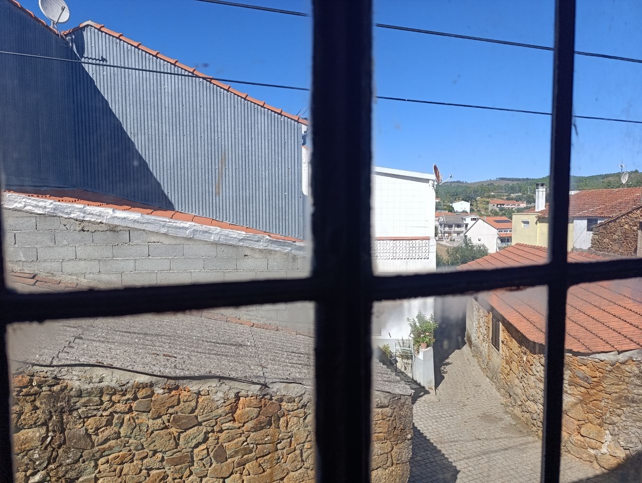 A casa tem a área bruta de 144 m2: no rés do chão tem uma divisão ampla e uma cozinha no quintal. No 1º piso tem 1 cozinha, 1 sala e 4 quartos. No 2º piso tem o sótão amplo. O telhado está bom, foi feito há apenas 5 anos. A estrutura da casa é toda em pedra, o teto de madeira está bom e parte do soalho também está bem conservado.