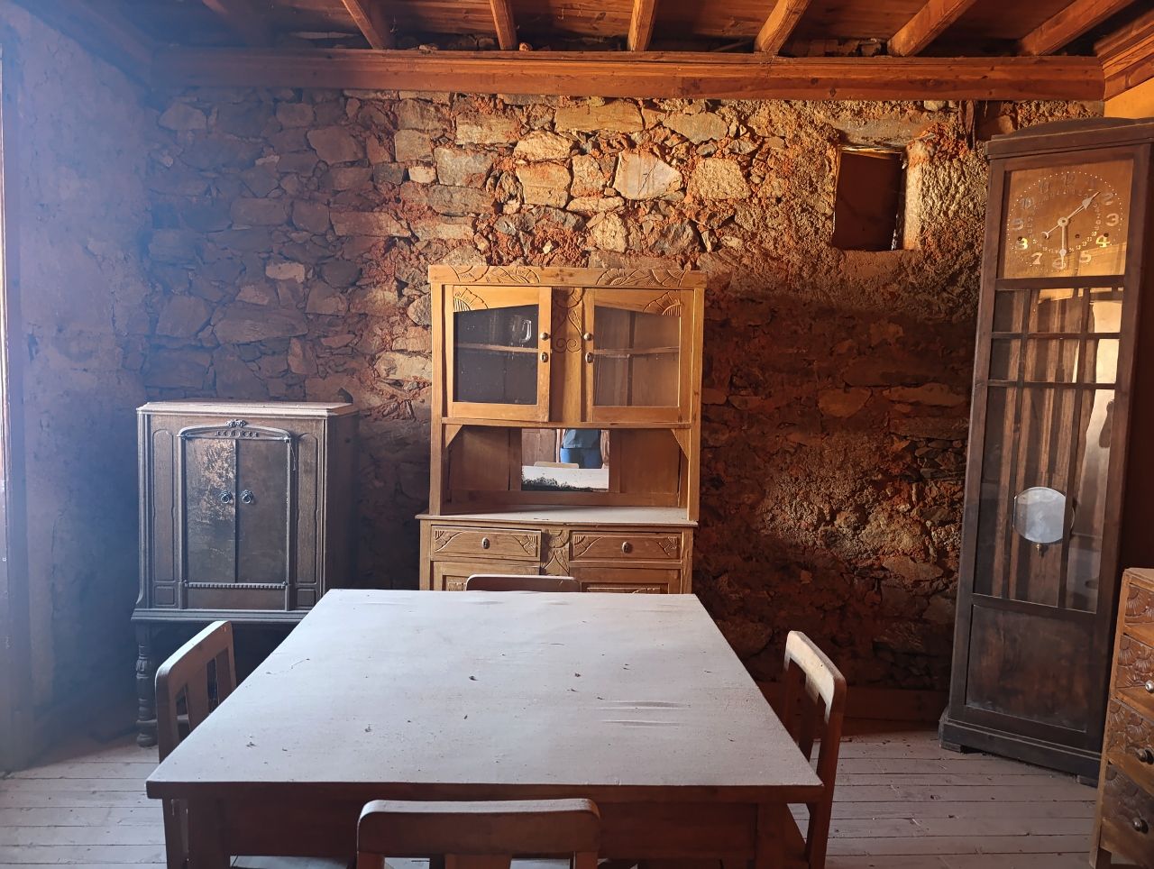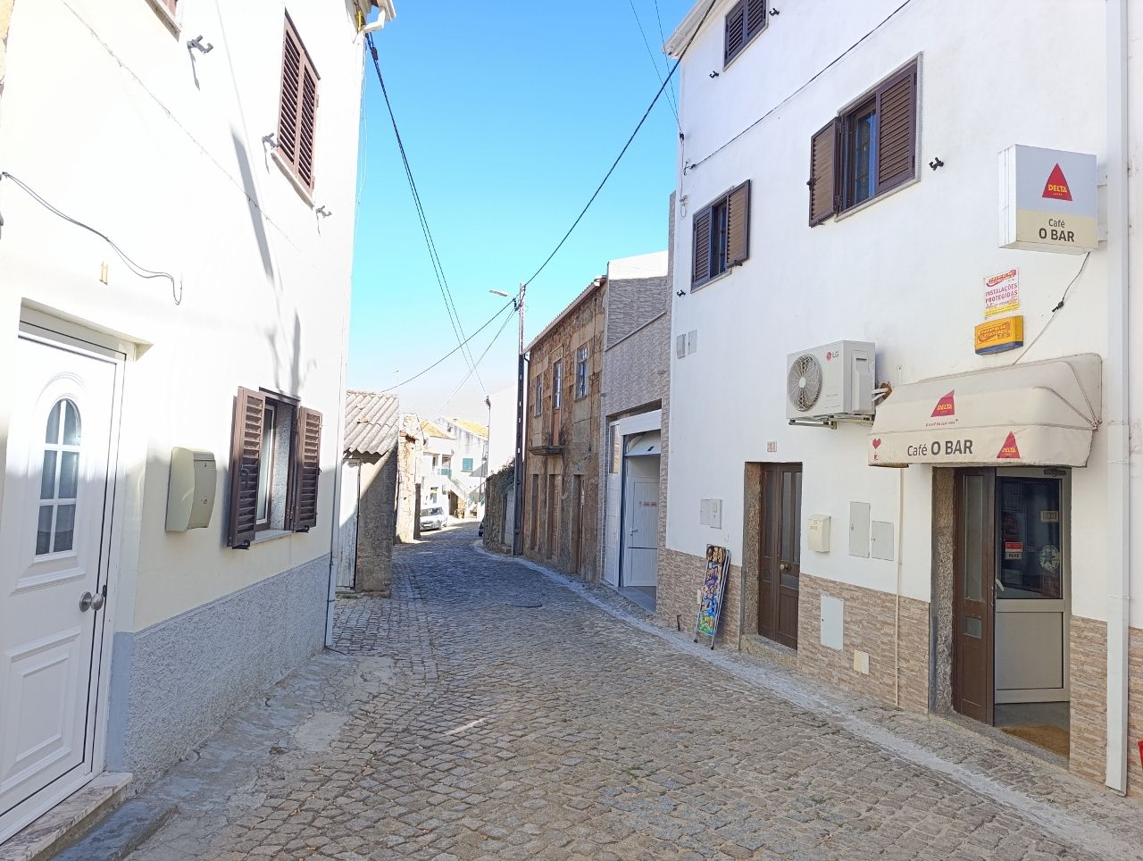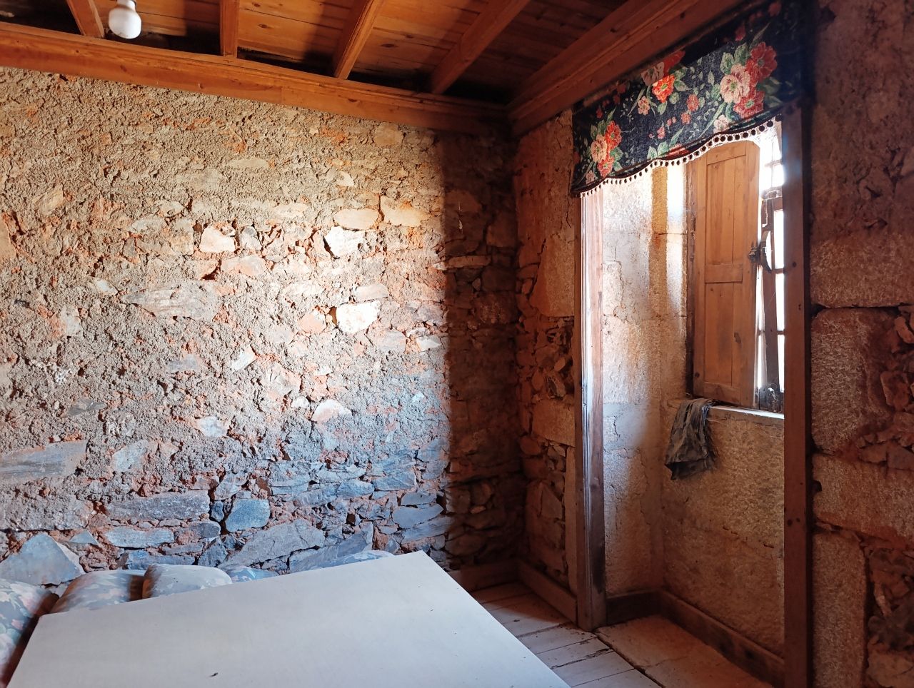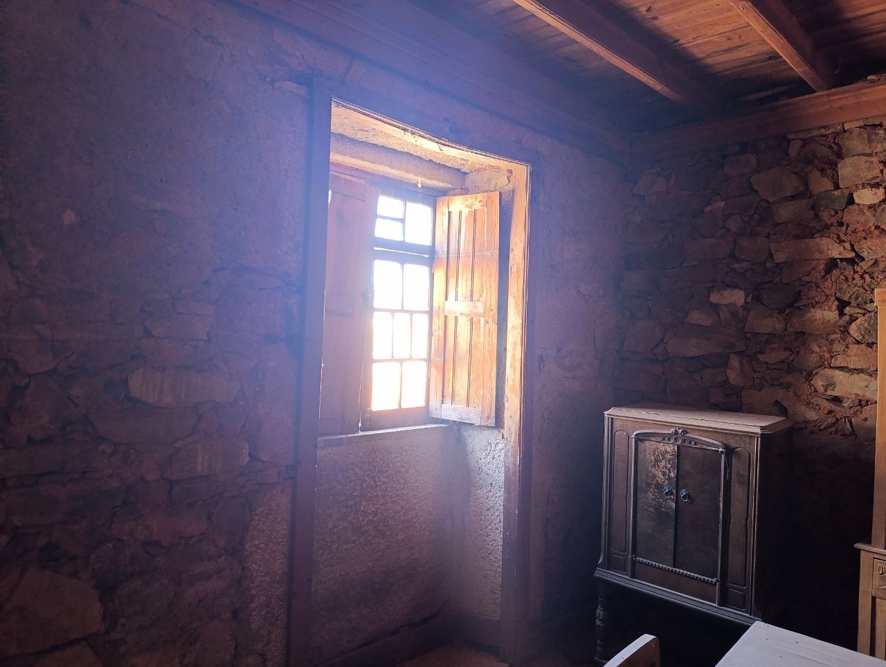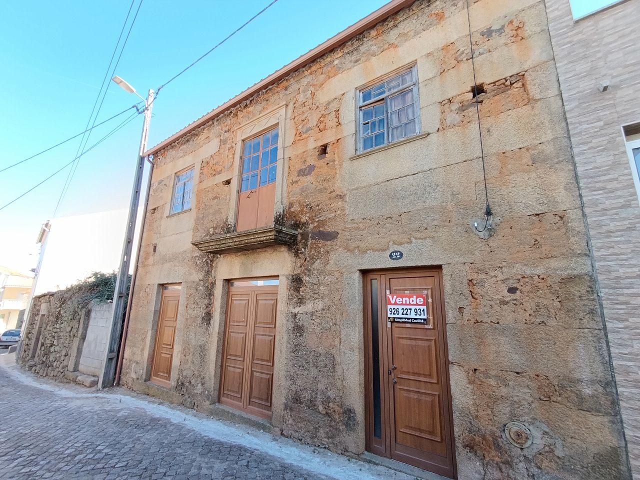 A casa tem a área bruta de 144 m2: no rés do chão tem uma divisão ampla e uma cozinha no quintal. No 1º piso tem 1 cozinha, 1 sala e 4 quartos. No 2º piso tem o sótão amplo. O telhado está bom, foi feito há apenas 5 anos. A estrutura da casa é toda em pedra, o teto de madeira está bom e grande parte do soalho também está bem conservado.