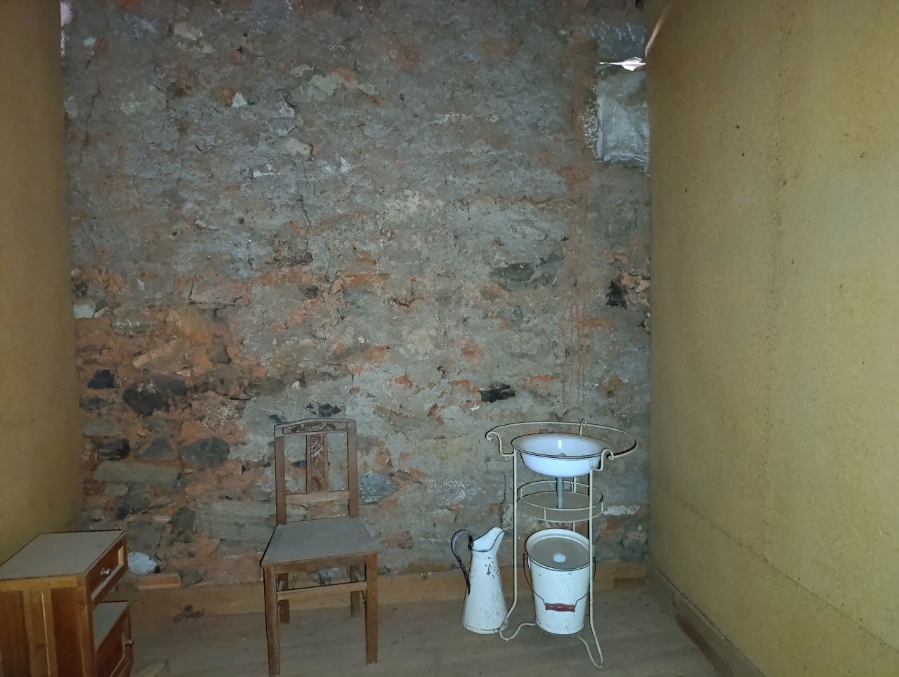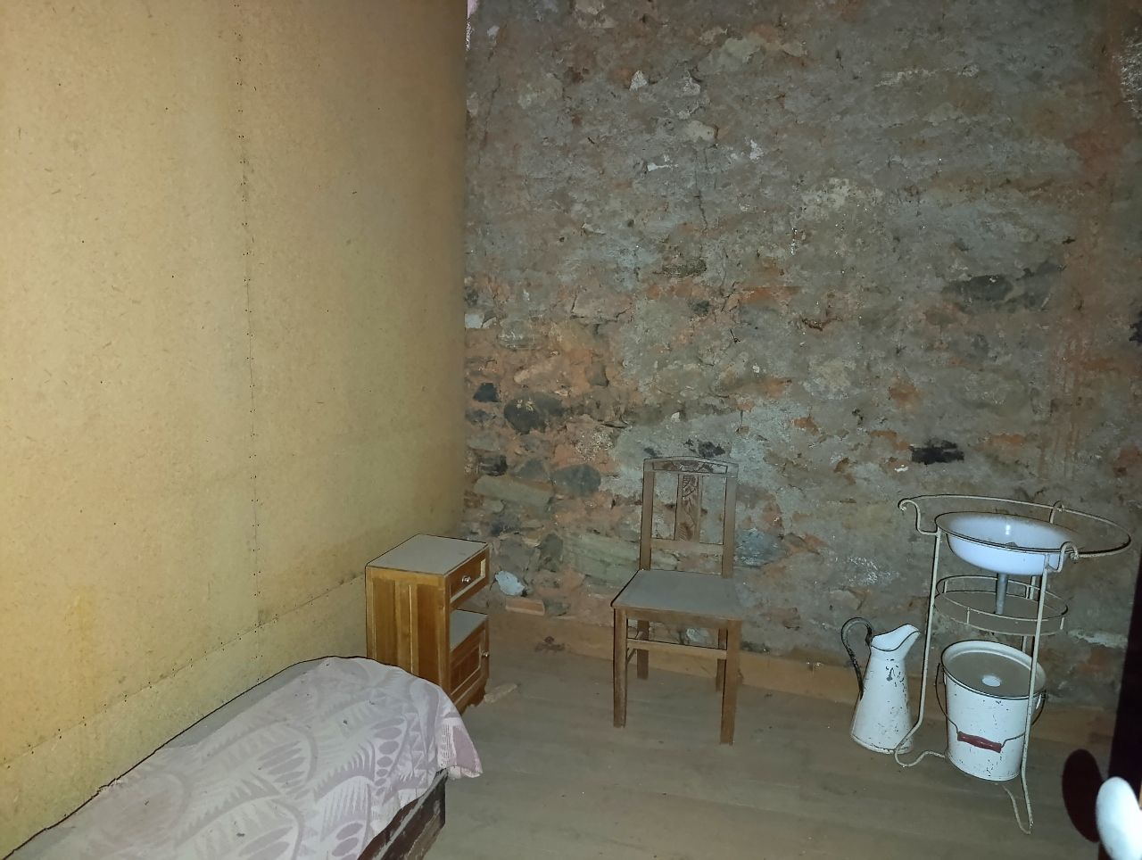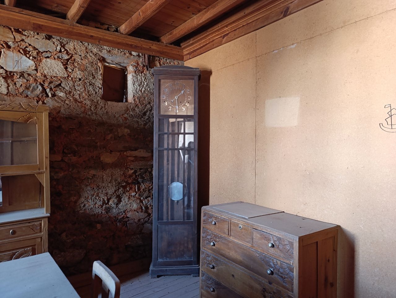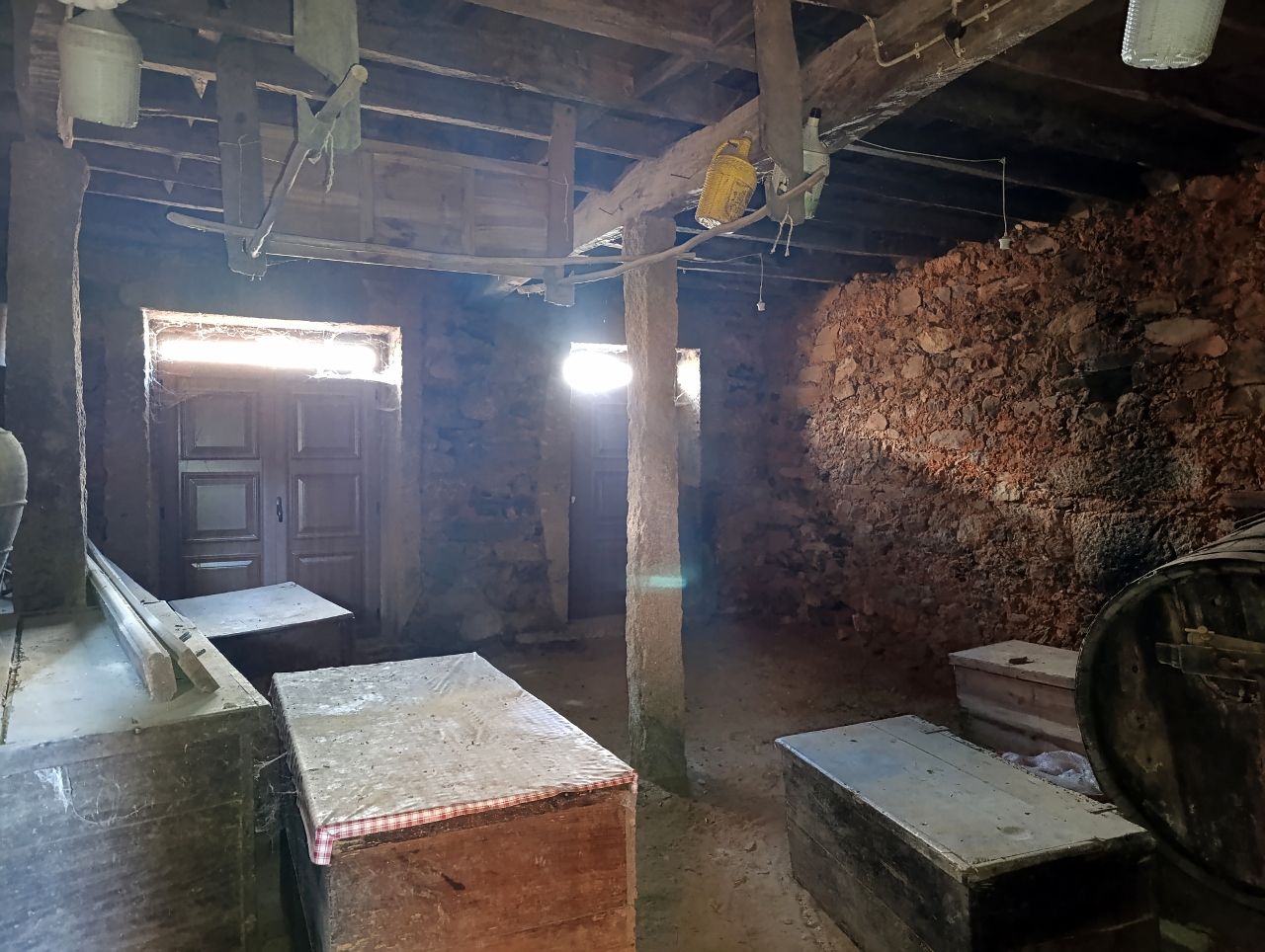 A casa tem a área bruta de 144 m2: no rés do chão tem uma divisão ampla e uma cozinha no quintal. No 1º piso tem 1 cozinha, 1 sala e 4 quartos. No 2º piso tem o sótão amplo. O telhado está bom, foi feito há apenas 5 anos. A estrutura da casa é toda em pedra, o teto de madeira está bom e grande parte do soalho também está bem conservado.
