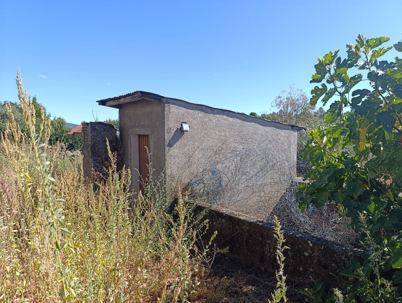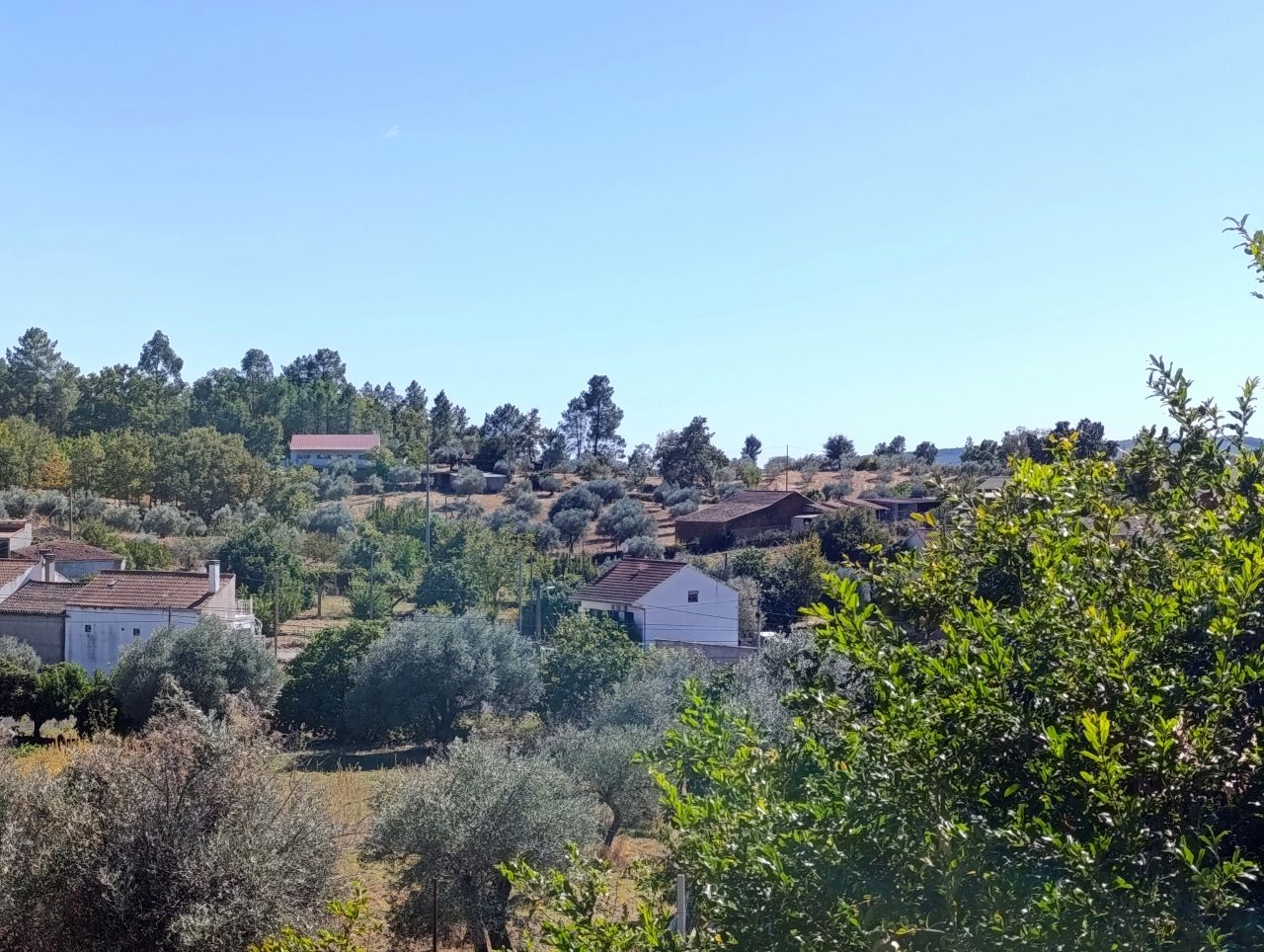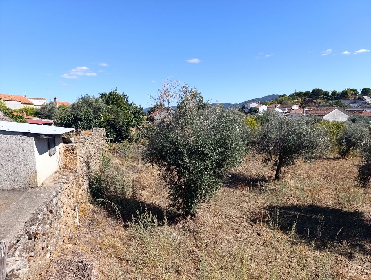 No terreno tem água do regadio, 1 wc, tem oliveiras, figueiras, romãzeira, tangerineira e limoeiro.
