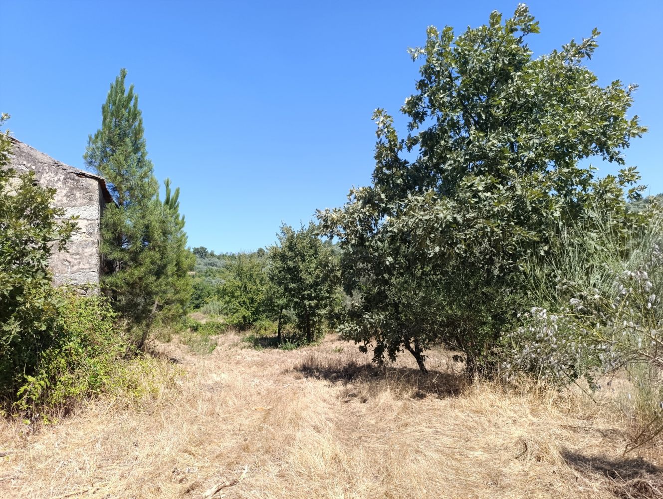 É um lugar tranquilo, com bonitas vistas para o campo e serra, tem 2 ruínas geminadas, com 2 pisos, uma tem 200 m2 de área de construção e a outra tem 160 m2, sendo a área total de implantação 180 m2. O terreno tem cerca de 3.300 m2 com alguns sucalcos.
